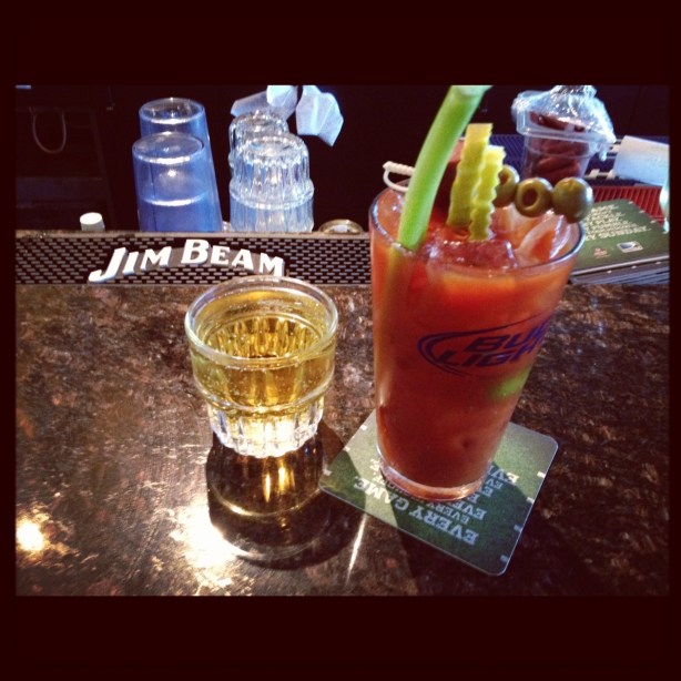 Today I went to Mulligan’s after golfing with my dad, Gordy and Mike at Ives Grove. There really isn’t any other good bar to patronize after golfing in the area, so we end up here. We typically go on Sundays, but with today being Labor Day, we found ourselves in the establishment to catch the last 3 innings of the Brewers-Marlins game. I, of course, ordered a bloody. No surprise, I’ve had them here plenty of times. They aren’t bad, but they aren’t anything to, well, blog about, really. But in a pinch, they will do. And trust me, I’m not complaining—I had two.