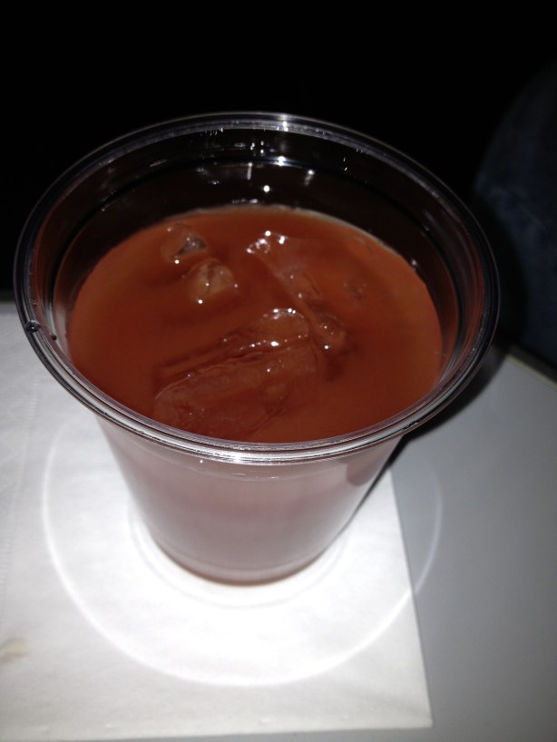 This drink is so new it doesn’t even have a name; it is something they are experimenting with—a main ingredient is tomato water and that’s also a cherry tomato you see floating in the drink. It has a lot of other ingredients—some of which I hadn’t heard of and some of which I can’t pronounce/spell, but the the things I remembered were the tomato water and gin.[Tomato water, in case you’re wondering, is the water extracted without the beef or seeds from the tomato.] It was definitely a lighter drink, and it was pretty good. It didn’t taste very tomato-ey at all to me and I’m not going to give up Bloodies now or anything, but I’d say they have a unique drink to play with and I’d try it again.