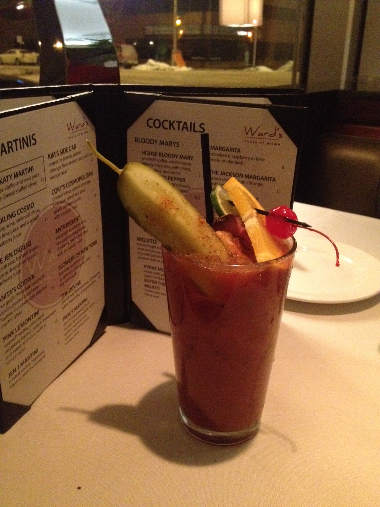 Over the weekend, I dined at Ward’s House of Prime in Milwaukee for the first time. Ward’s is one of Milwaukee’s top steakhouses and since I’ve noticed that steakhouses tend to have great Bloody Marys, I was very excited to see that Ward’s boasts three different varieties on its menu: