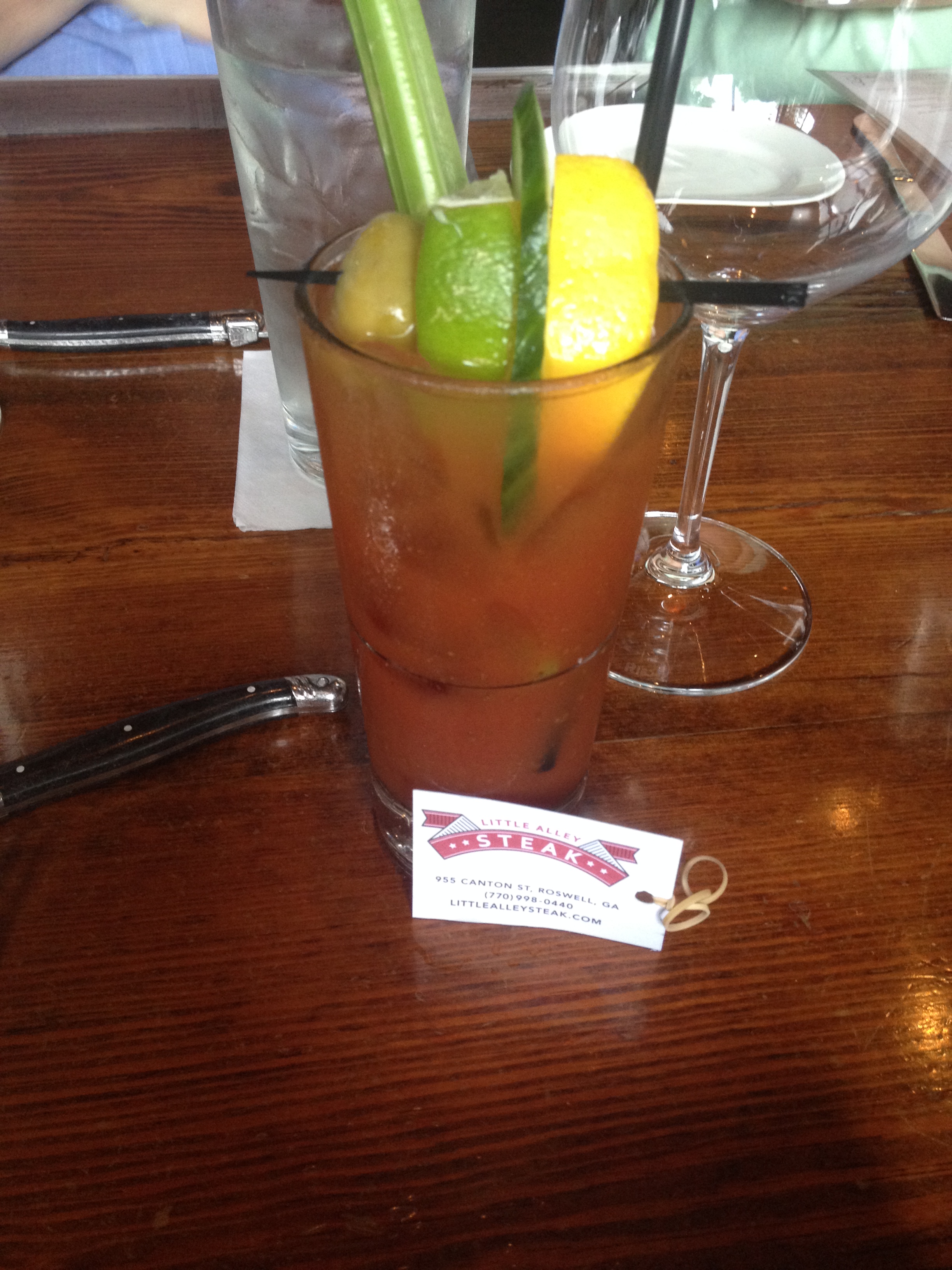 Little Alley delivered!  This Bloody was very spicy, just the way I like it–and had a decent about of fixin’s for a Bloody south of the Mason-Dixon.
