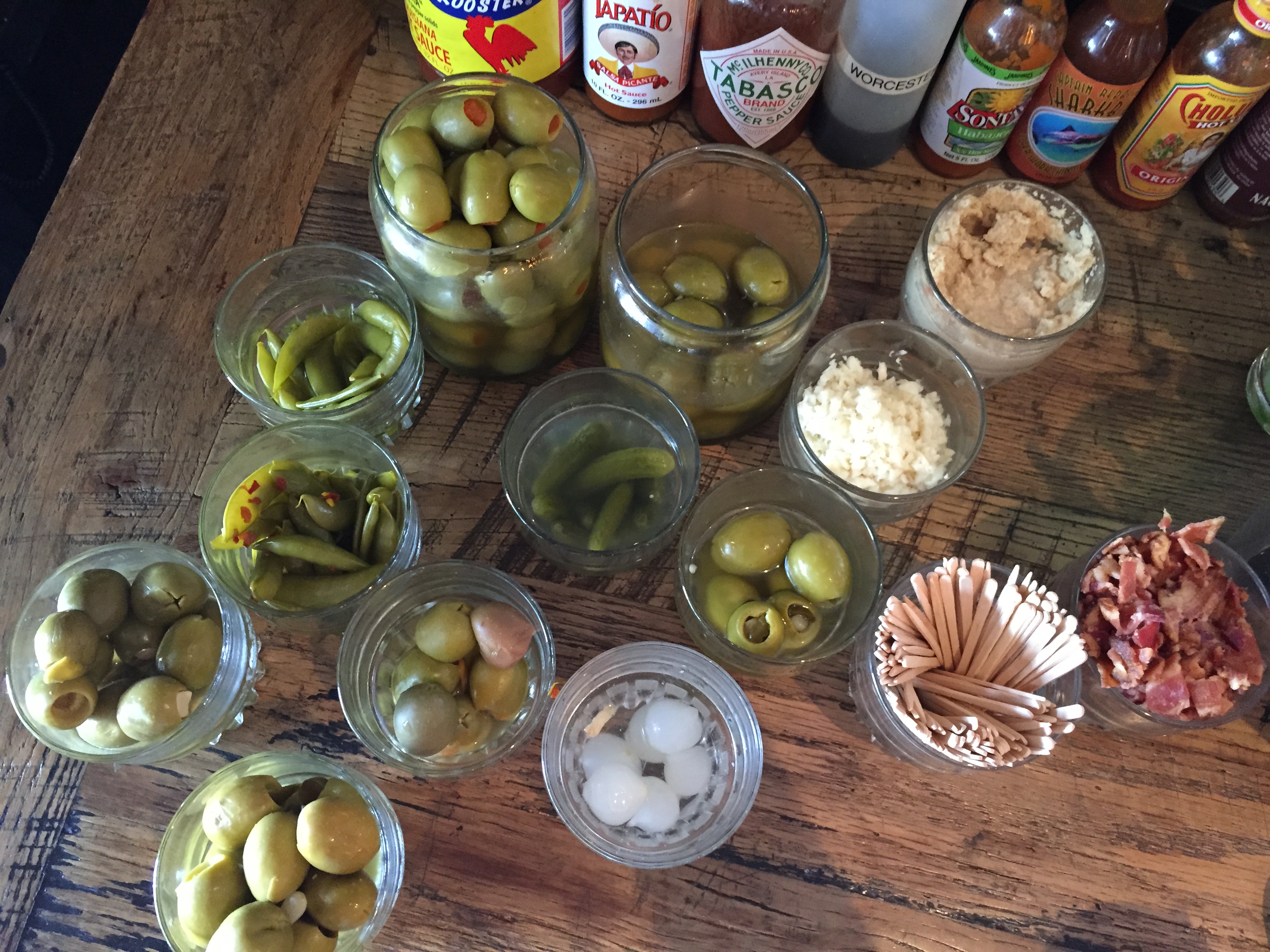 Garnishes include cocktail onions, pickles, olives, citrus, hot sauces and more.