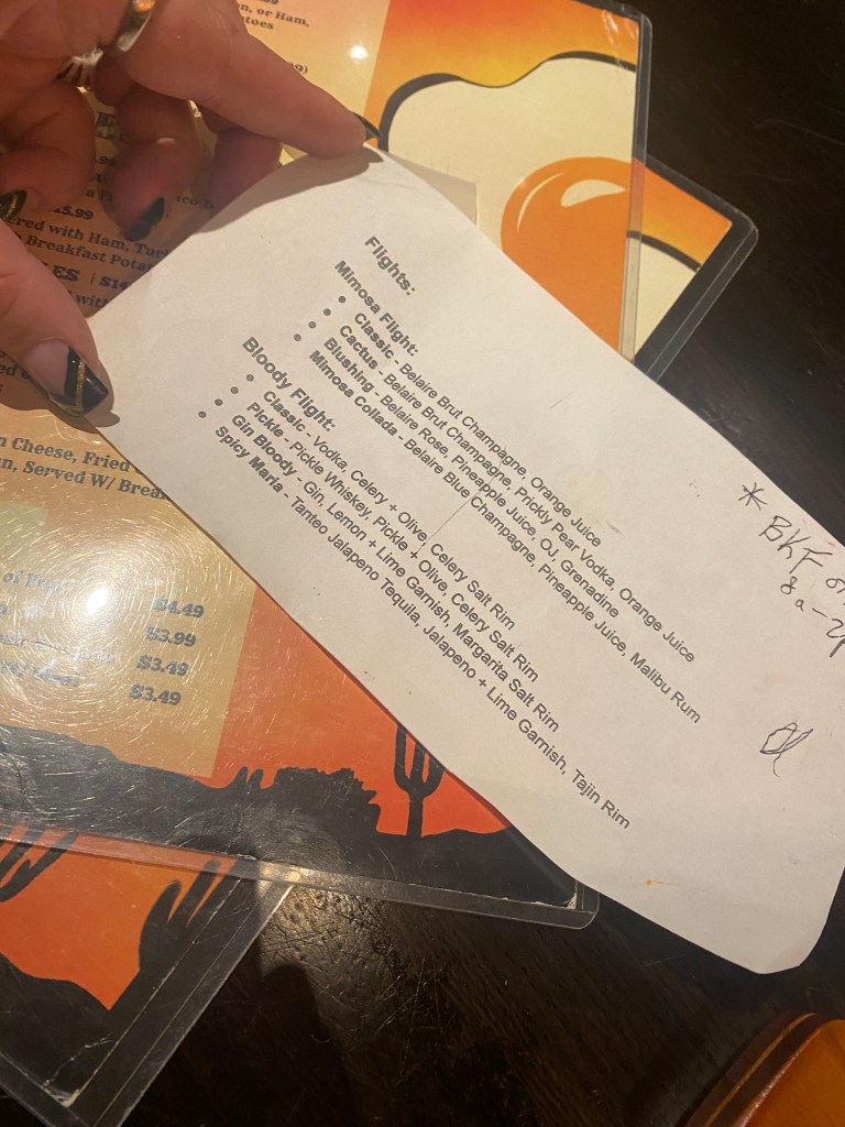 If you’re checking this place out for brunch and want a bloody, I would definitely recommend skipping the flight and lesson learned: always ask if a price isn’t listed!