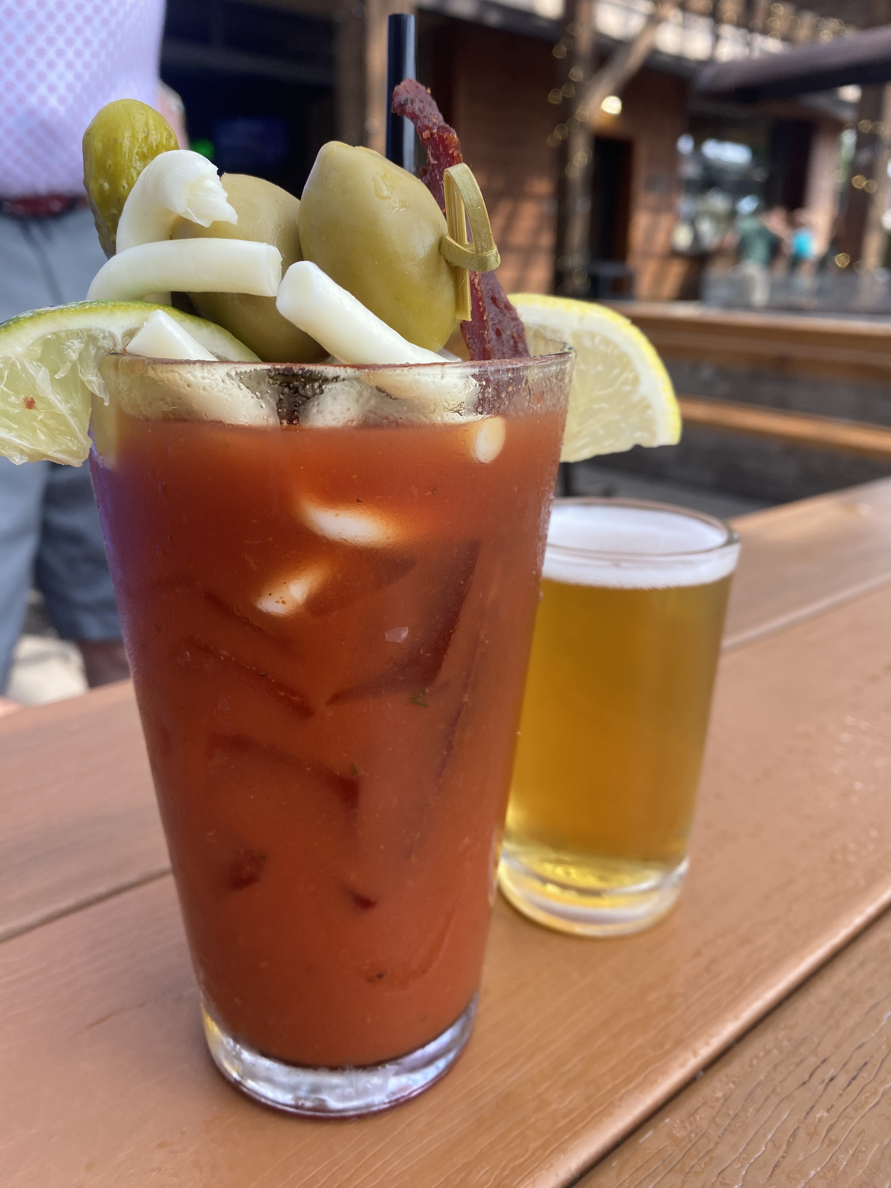 It seemed that aside from the different alcohols, fixin’s and salt, the overall bloody mary mix was the same in all four from my flight as well as the 16oz bloody… and we both agreed the flavor was very much lacking in all. If your basic mix isn’t good, then whatever you add really won’t help!