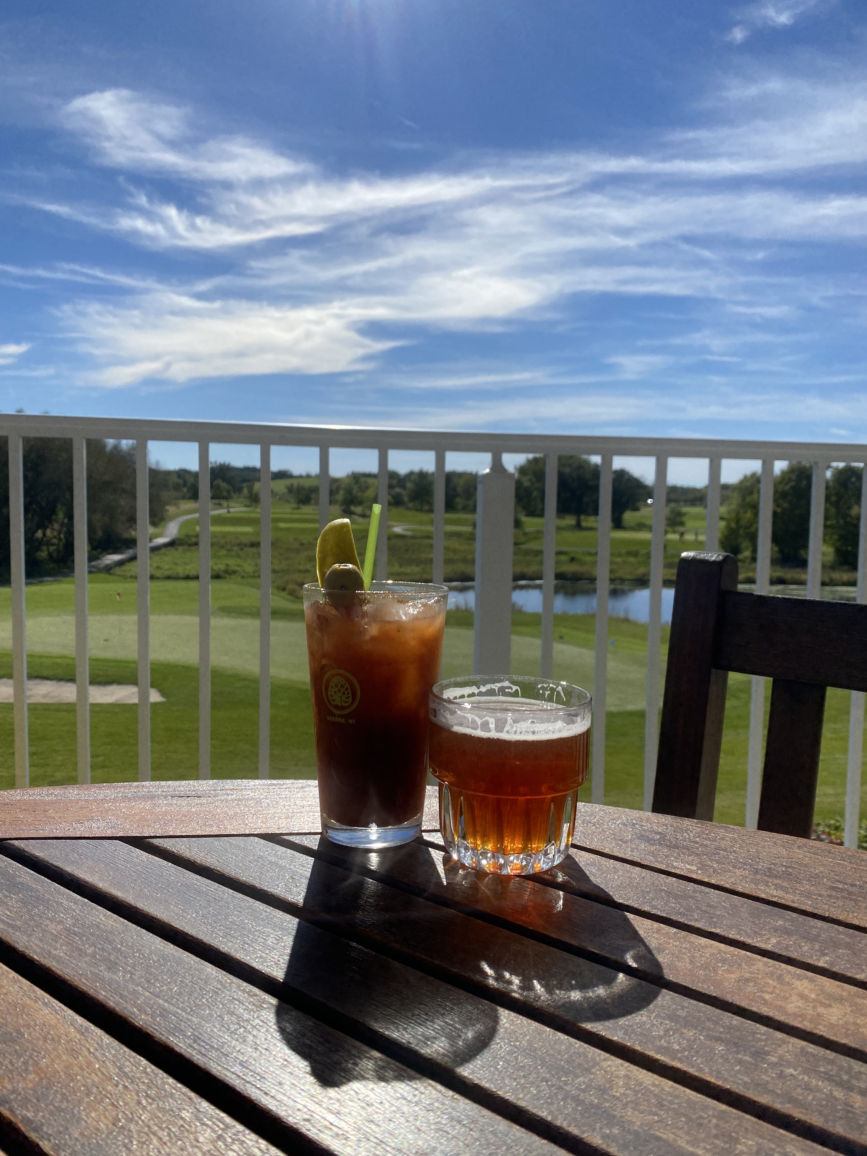 Earlier this summer, I played at the Oaks Golf Course in Madison, Wisconsin. It was a beautiful day and after, we relaxed on their lovely patio with a couple of post-round beverages.
