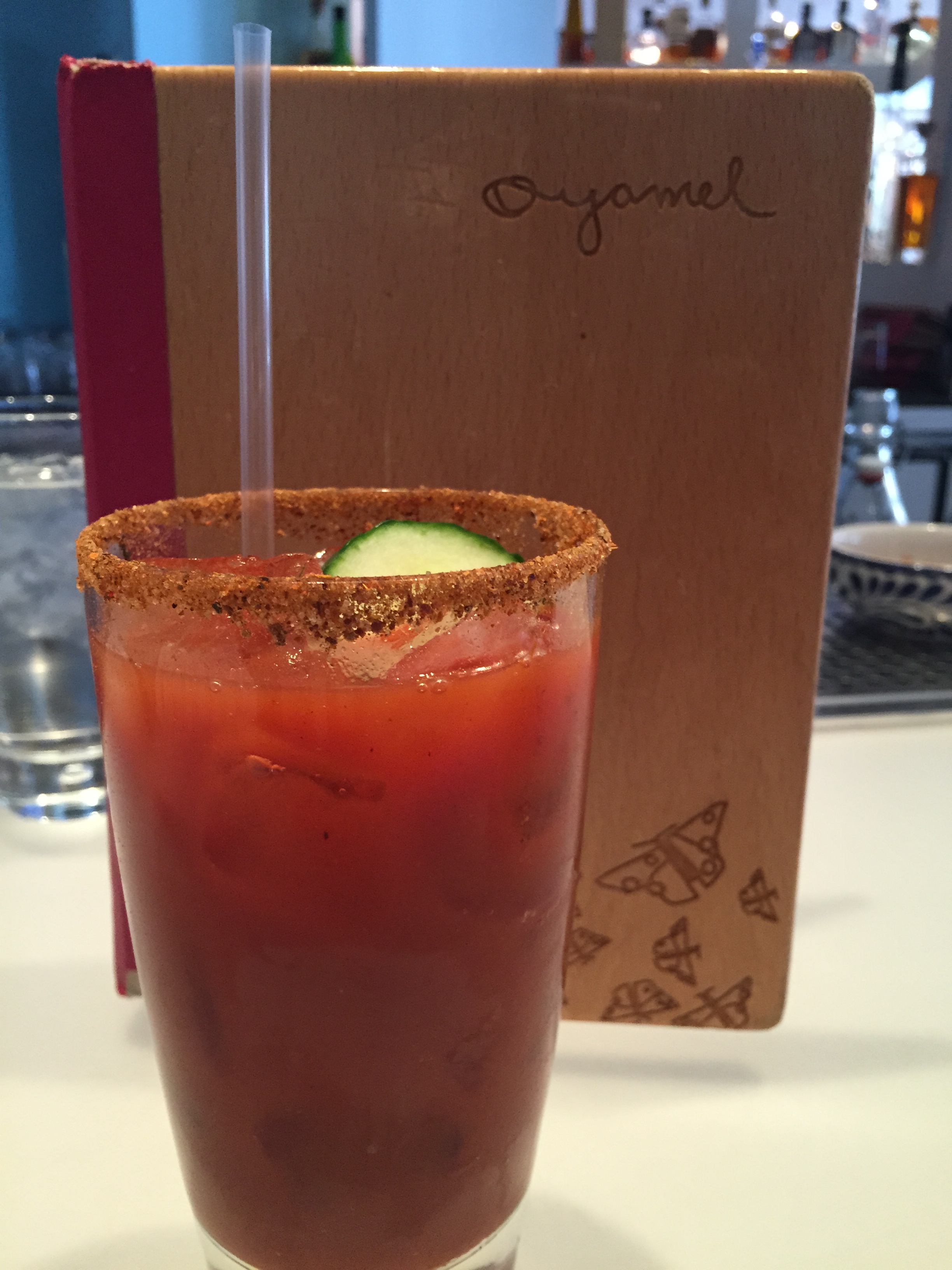 Anyway, we had heard that this location’s Queen Mary Bloody Mary featured a “golden” bloody mary mix, so we headed there expecting a yellow-hued drink.