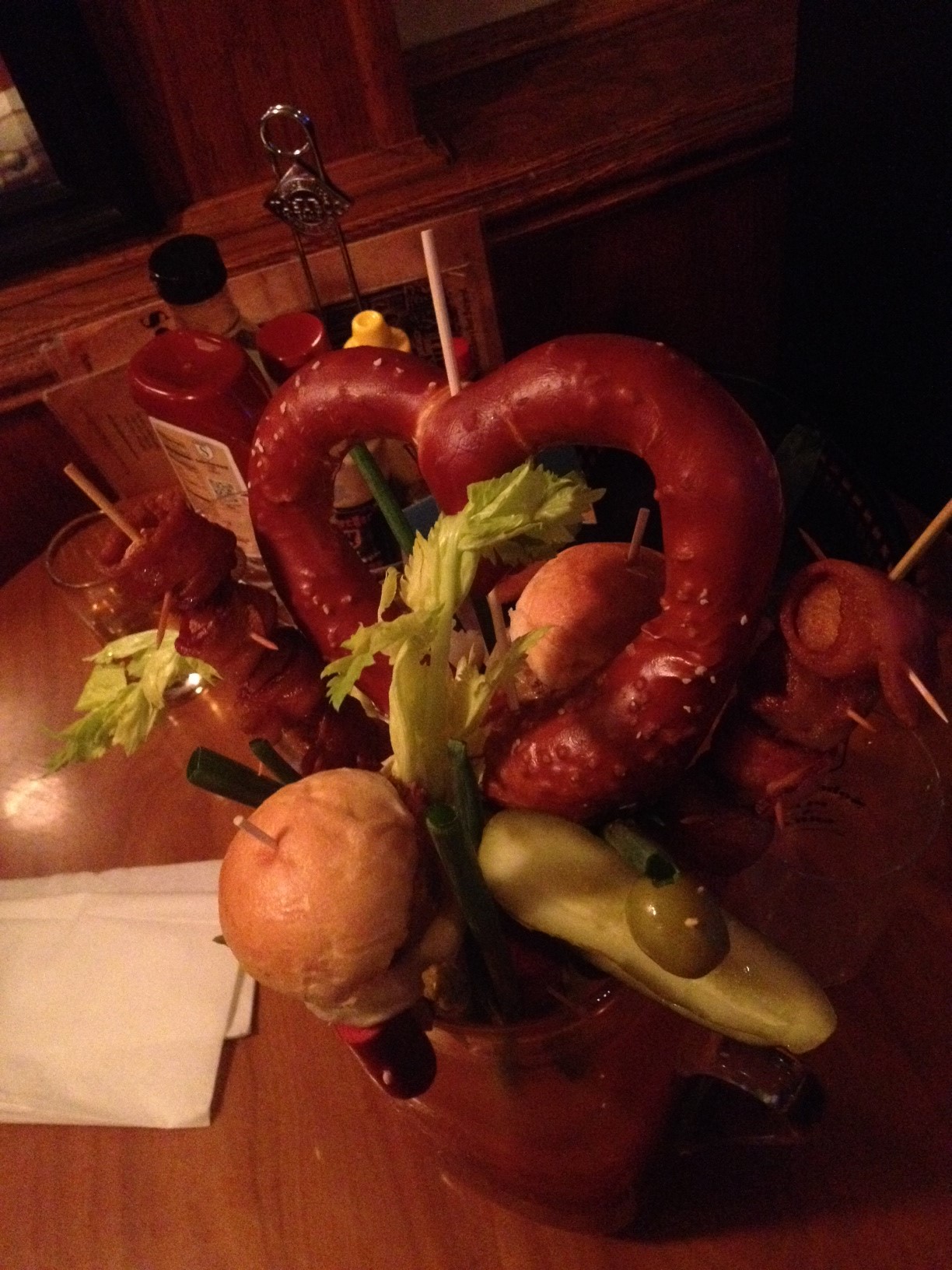 We’re talking about Bloody Marys, of course! We’d been seeing photos of Sobelman’s “Bloody Beast” popping up across the interwebs–with a special heart-shaped pretzel for the holiday–so we decided to check it out.