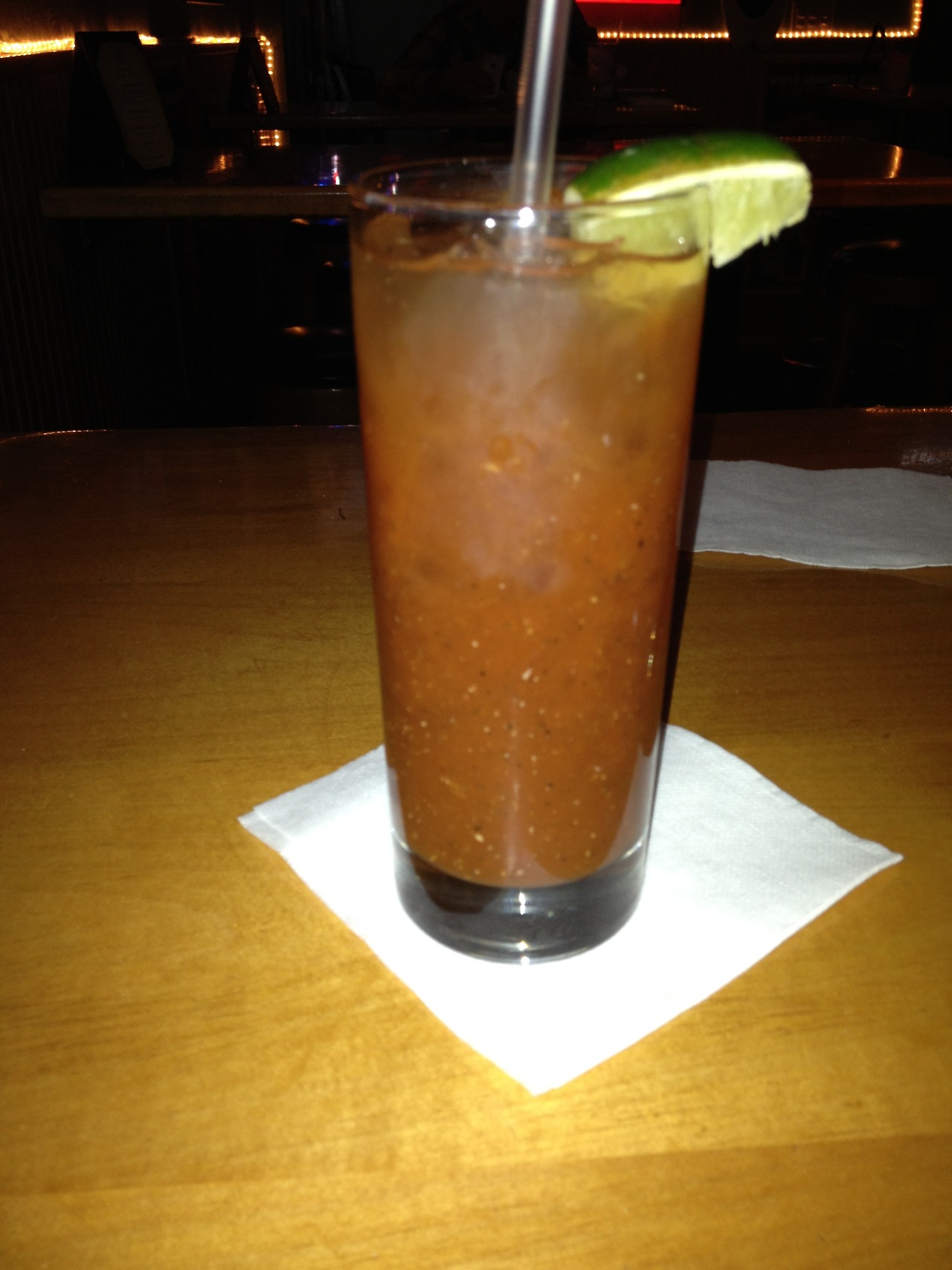 The flavor was good, but didn’t really stand out; it also came with just one olive-no other fixin’s. And I regret to inform you, I do not know the price as this round was purchased by a friend. I do know chasers weren’t included, though, because they also bought a round of beers.